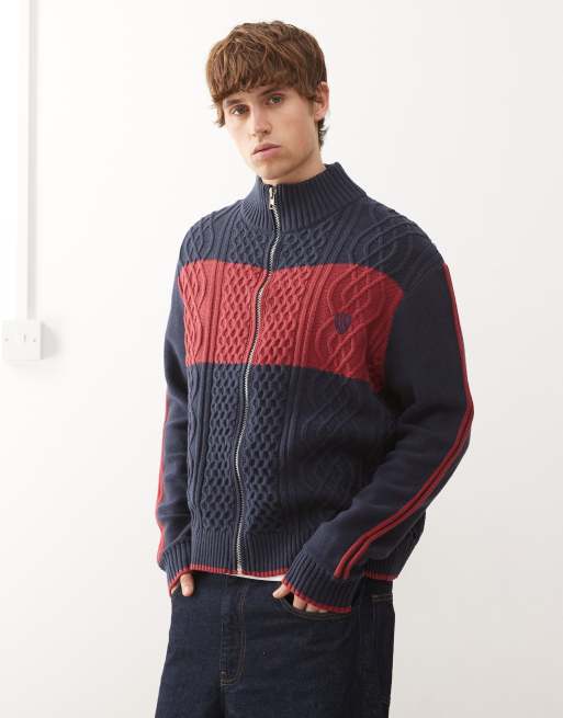 COLLUSION Zip up knit sports top in blue and red