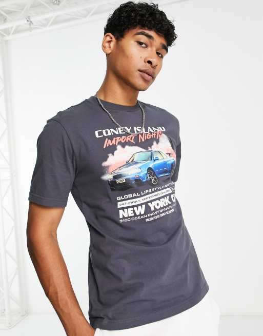 Coney Island Picnic import nights t-shirt in gray with chest print