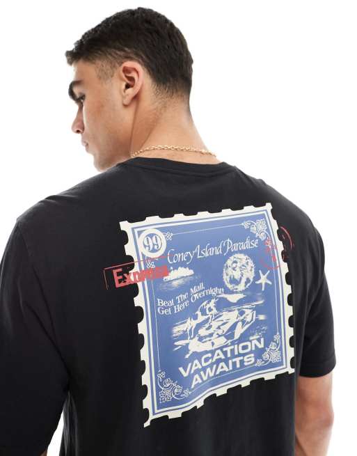 Coney Island Picnic stamp graphic t-shirt in washed gray