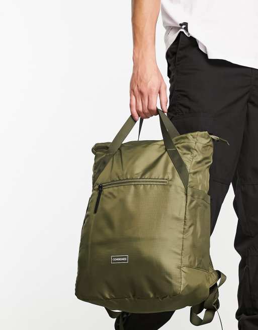 Consigned backpack tote bag in khaki