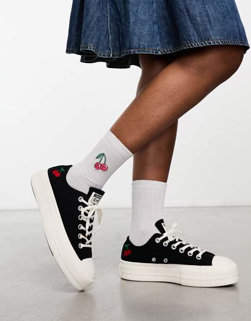Converse Chuck Taylor All Star Lift Ox Platform sneakers with cherry embroidery in black
