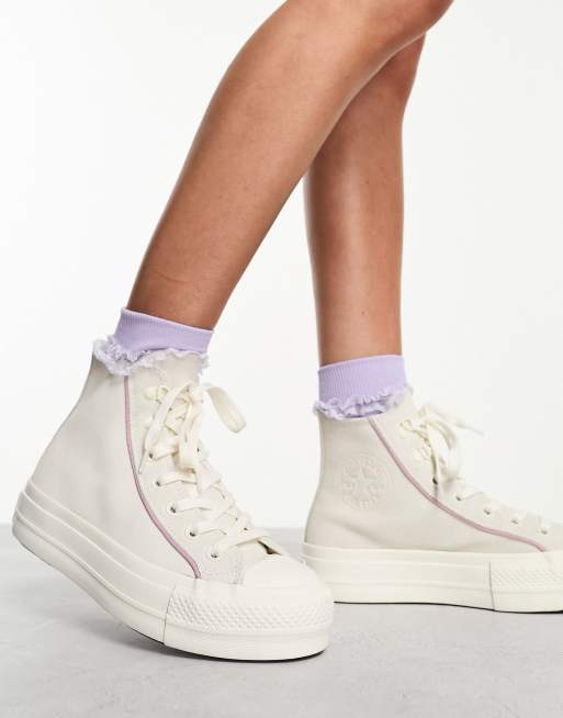 Converse Chuck Taylor All Star Lift platform sneakers in off-white with lilac detail