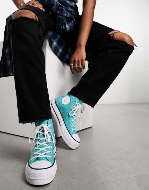 Converse Chuck Taylor All Star Lift Platform sneakers with star gems in blue