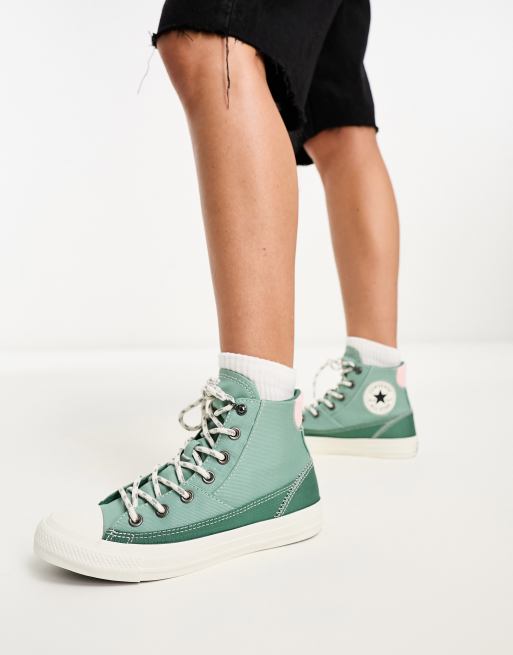 Converse Chuck Taylor All Star Patchwork sneakers with pink tab detail in light green