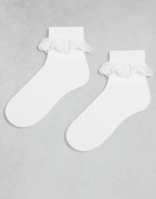Cotton On 2 pack pretty frill trim socks in white