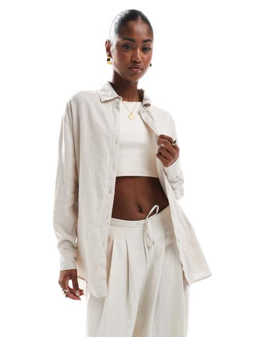 Cotton On Haven long sleeve linen blend shirt in beige