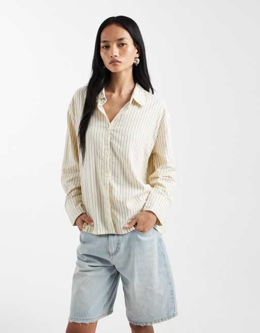 Cotton On Haven oversized dad shirt in yellow stripe