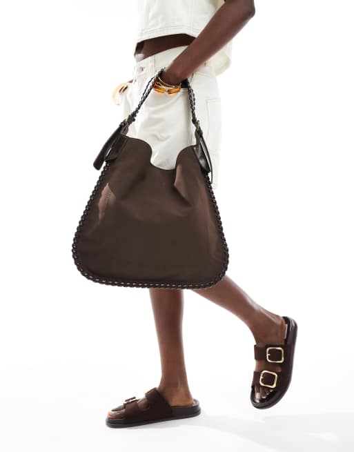 Cotton On Paige saddle bag in chocolate microsuede