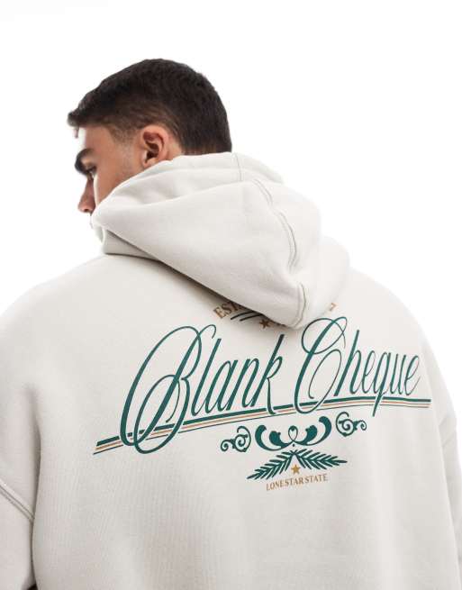 Cotton On box fit hoodie with blank cheque graphic in cream