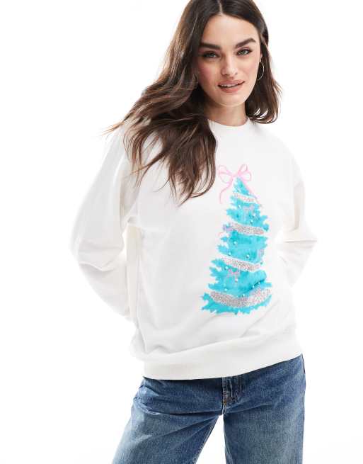 Cotton On christmas tree lounge sweatshirt in coconut milk