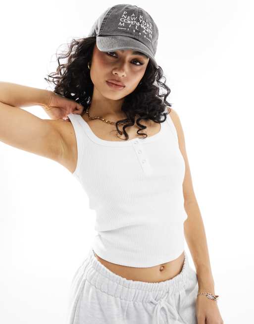 Cotton On henley crop tank top with button front in white