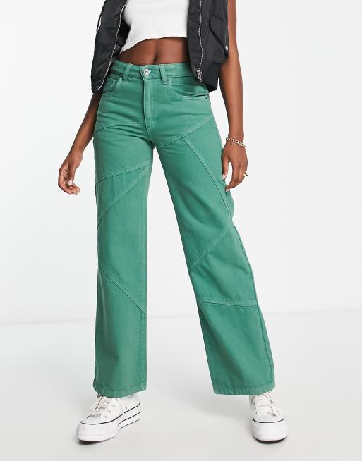 Cotton On panel straight leg jeans in green
