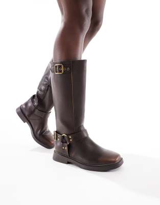 Cotton On Riley biker boots in distressed brown leather look