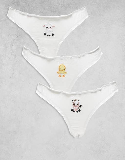 Daisy Street 3-pack cute animal graphic briefs in white