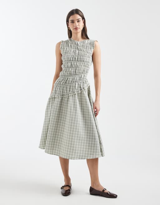 Daisy Street asymmetric midaxi dress with ruffle detailing in gray plaid