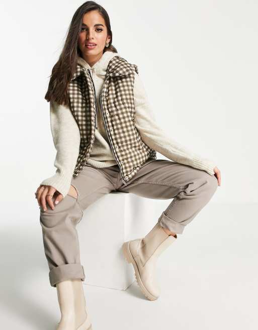 Daisy Street cropped puffer vest in gingham with collar