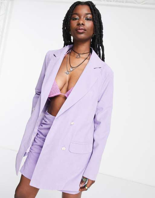 Daisy Street oversized boyfriend blazer with retro floral buttons in lilac - part of a set