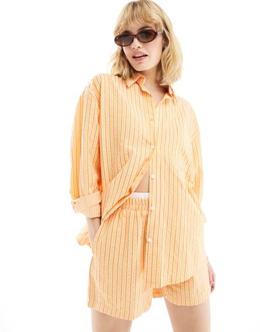 Daisy Street oversized boyfriend shirt in orange textured stripe - part of a set