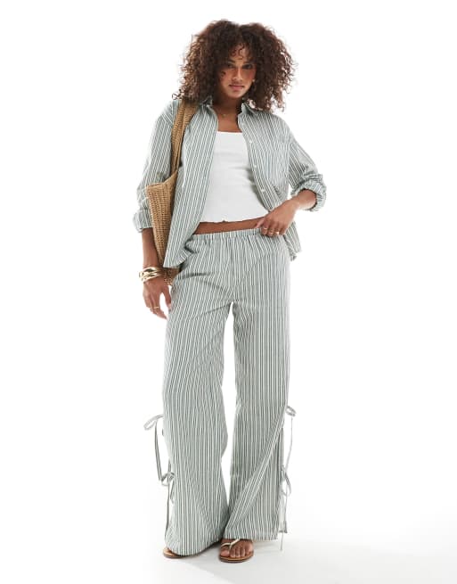 Daisy Street pull on pants with tie sides in green stripes - part of a set