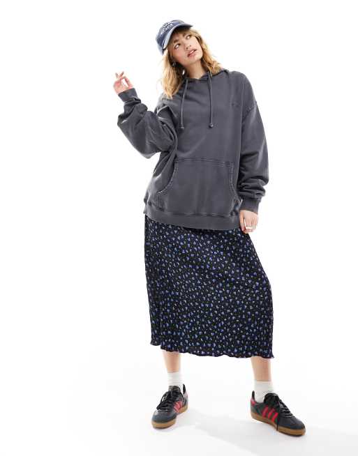 Daisy Street relaxed low rise midi skirt in blue black ditsy