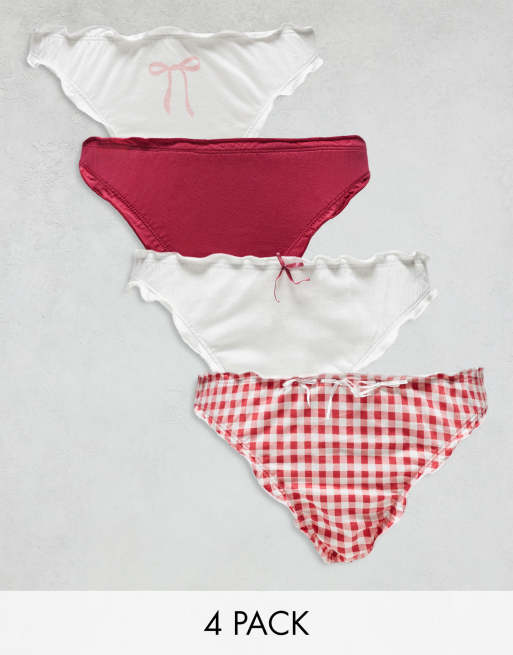Daisy Street ruffle cotton gingham multi briefs pack
