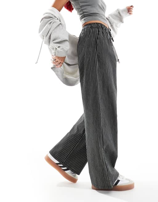 Daisy Street wide leg pull on pants in black and white stripe