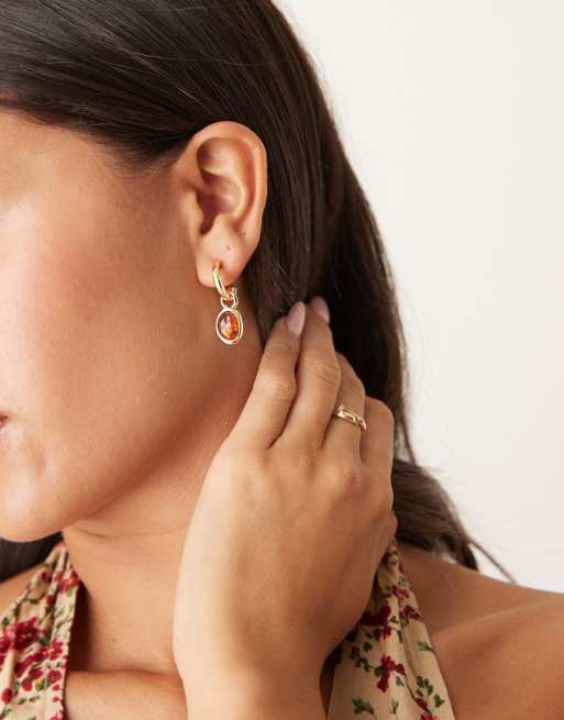 DesignB London gem stone huggie hoop earrings in amber gold tone