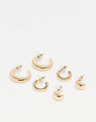 DesignB London pack of 3 teardrop hoop earrings in gold