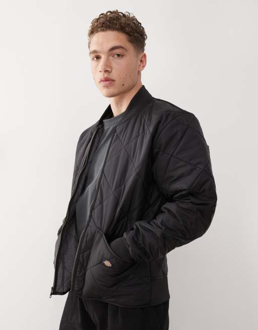 Dickies diamond quilted bomber jacket in black