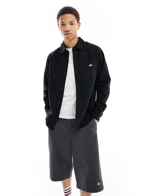 Dickies Duck canvas long sleeve shirt in relaxed fit in stonewashed black
