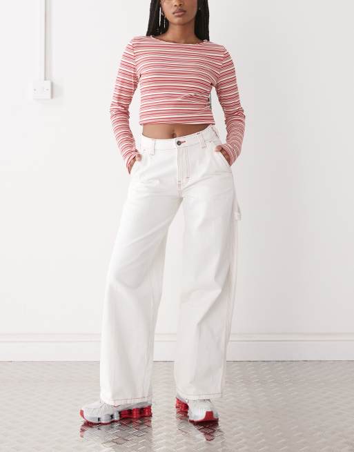Dickies loose denim carpenter pants in white