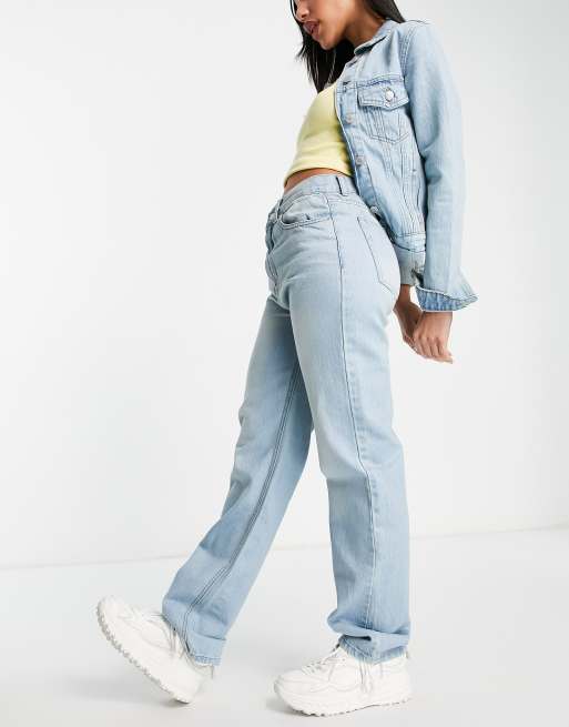 DTT 90s high rise wide leg jeans in light wash blue