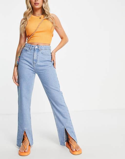 DTT Katy straight leg jeans with front slit in blue
