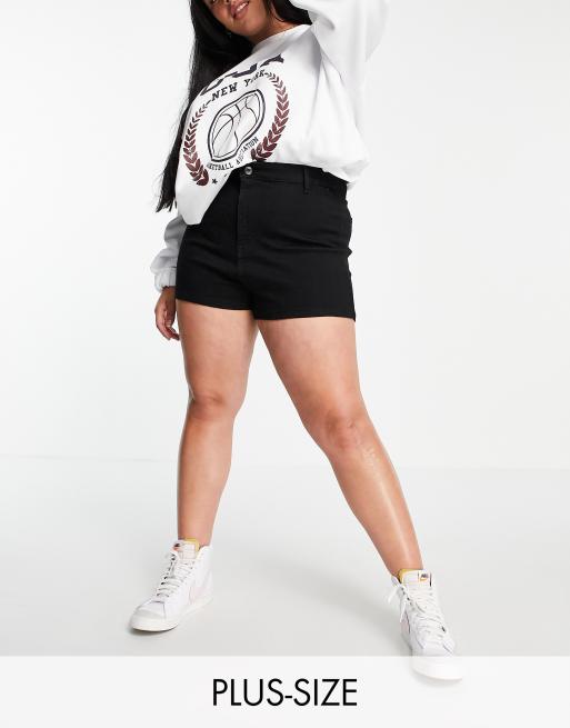 DTT Plus Charlotte high waist disco denim shorts in black