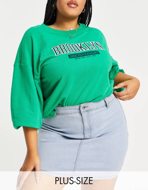DTT Plus Clara high waisted stretch denim skirt in light blue