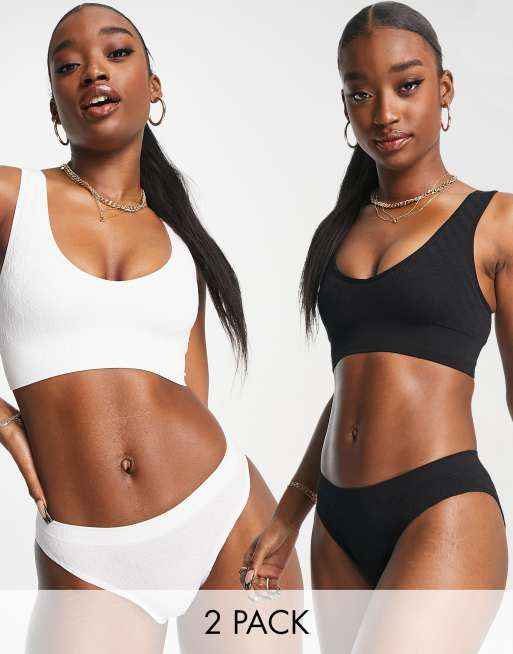 Dorina Azure textured knit brazilian briefs 2 pack in black & ivory - MULTI