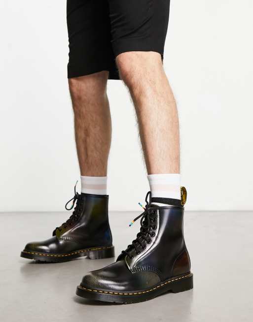 Dr Martens Pride 1460 8 Eye Boots in Multi Rainbow Rub Off