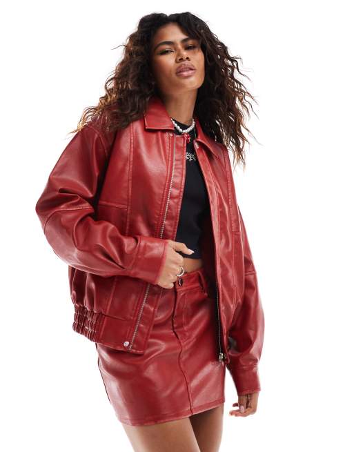 Emory Park oversized faux leather bomber jacket in distressed red