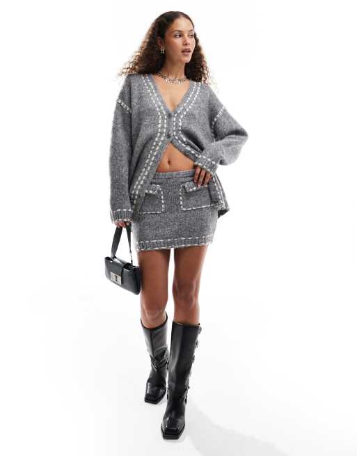Emory Park stitch detail knit mini skirt in gray - part of a set