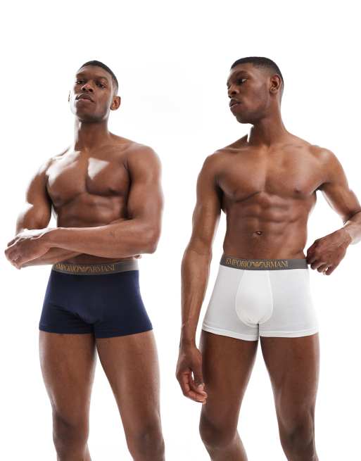 Emporio Armani Bodywear 2 pack soft touch bamboo logo briefs in white and navy