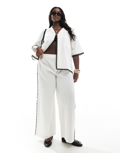 Esmee Curve Exclusive rick-rack beach pants in white - part of a set