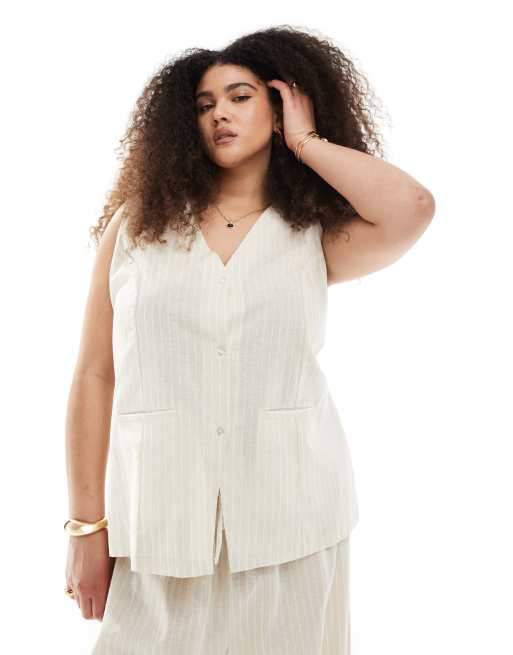 Esmee Curve Exclusive vest in beige and white stripe - part of a set
