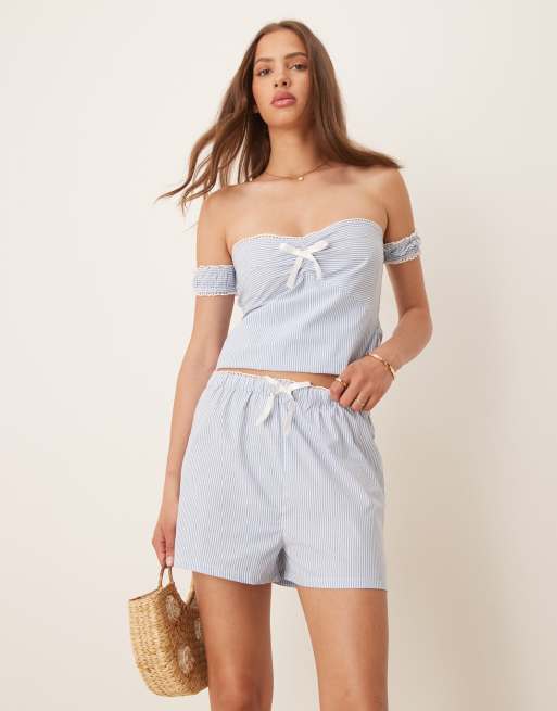 Esmee Exclusive bow detail beach set in blue and white stripes
