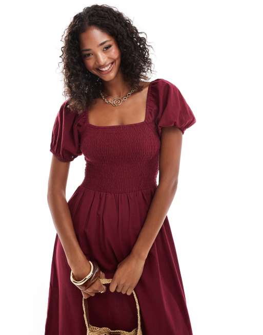 Esmee Exclusive puff sleeve midi beach dress in cherry red