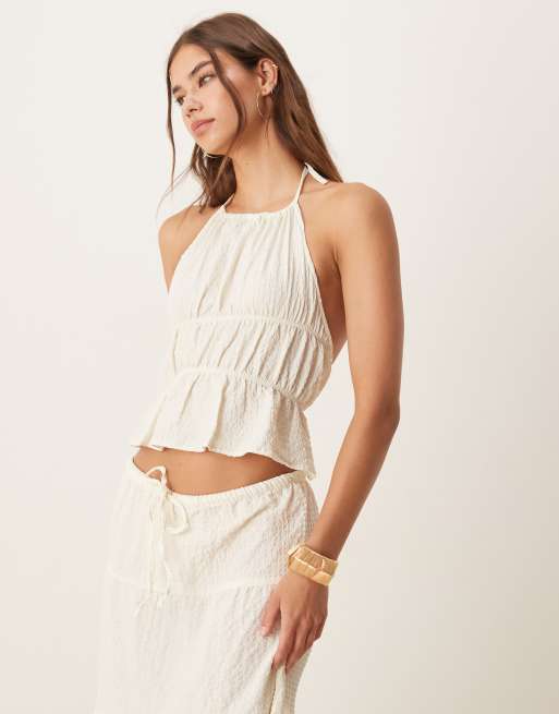 Esmee Exclusive sheer open back halterneck beach top in textured cream - part of a set