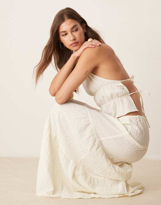 Esmee Exclusive sheer tiered beach skirt in textured cream - part of a set