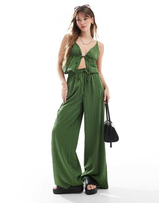 Esmee Exclusive textured wide leg beach pants in olive - part of a set