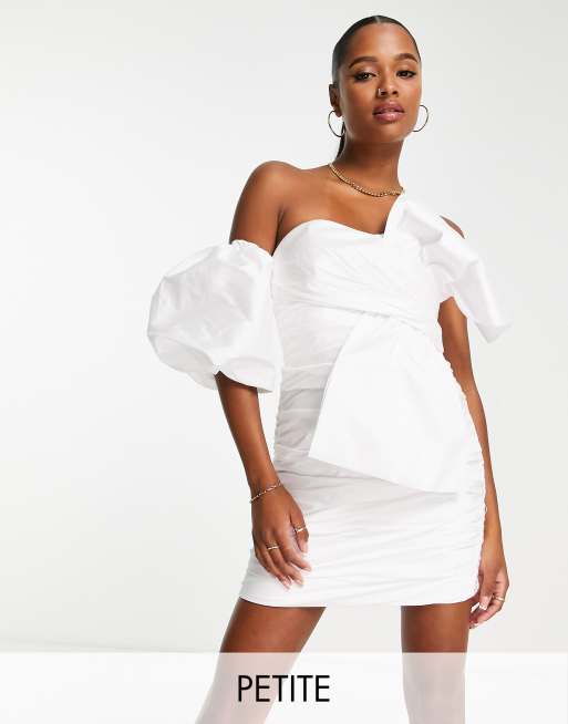 Ever New Petite taffeta one sleeve bow mini dress in winter white