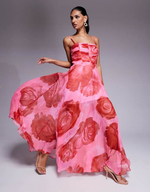 Ever New ruched body sheer maxi dress in red floral