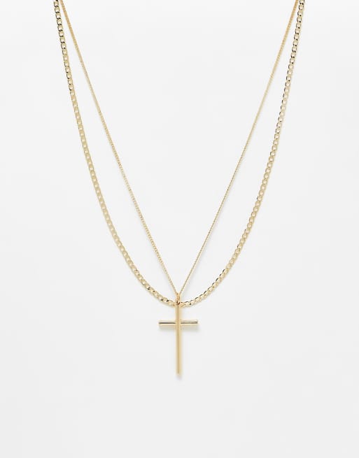 Faded Future multipack chain and cross pendant necklace in gold